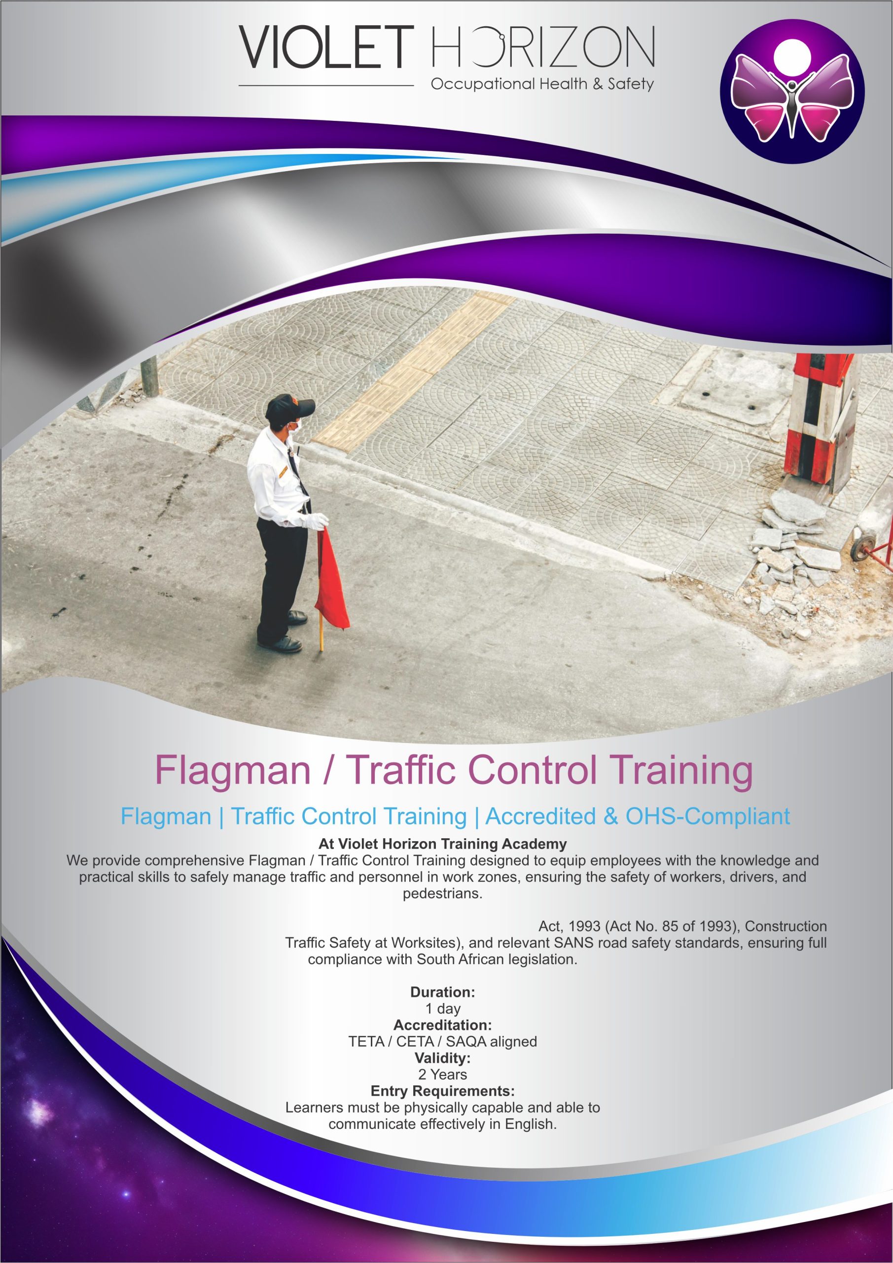 At Violet Horizon Training Academy, our Flagman Training Course equips employees with the knowledge and practical skills to safely manage traffic and personnel in work zones, ensuring the safety of workers, drivers, and pedestrians.