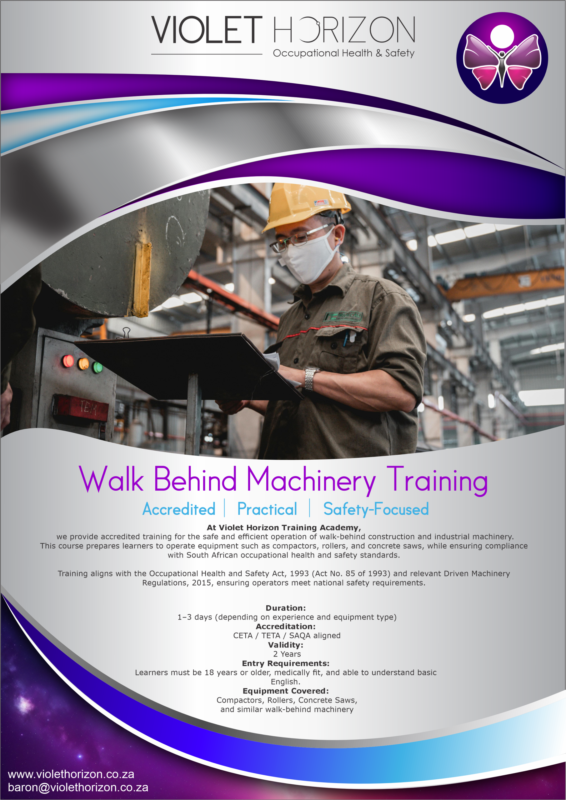 At Violet Horizon Training Academy, we provide accredited training for the safe and efficient operation of walk-behind construction and industrial machinery.
